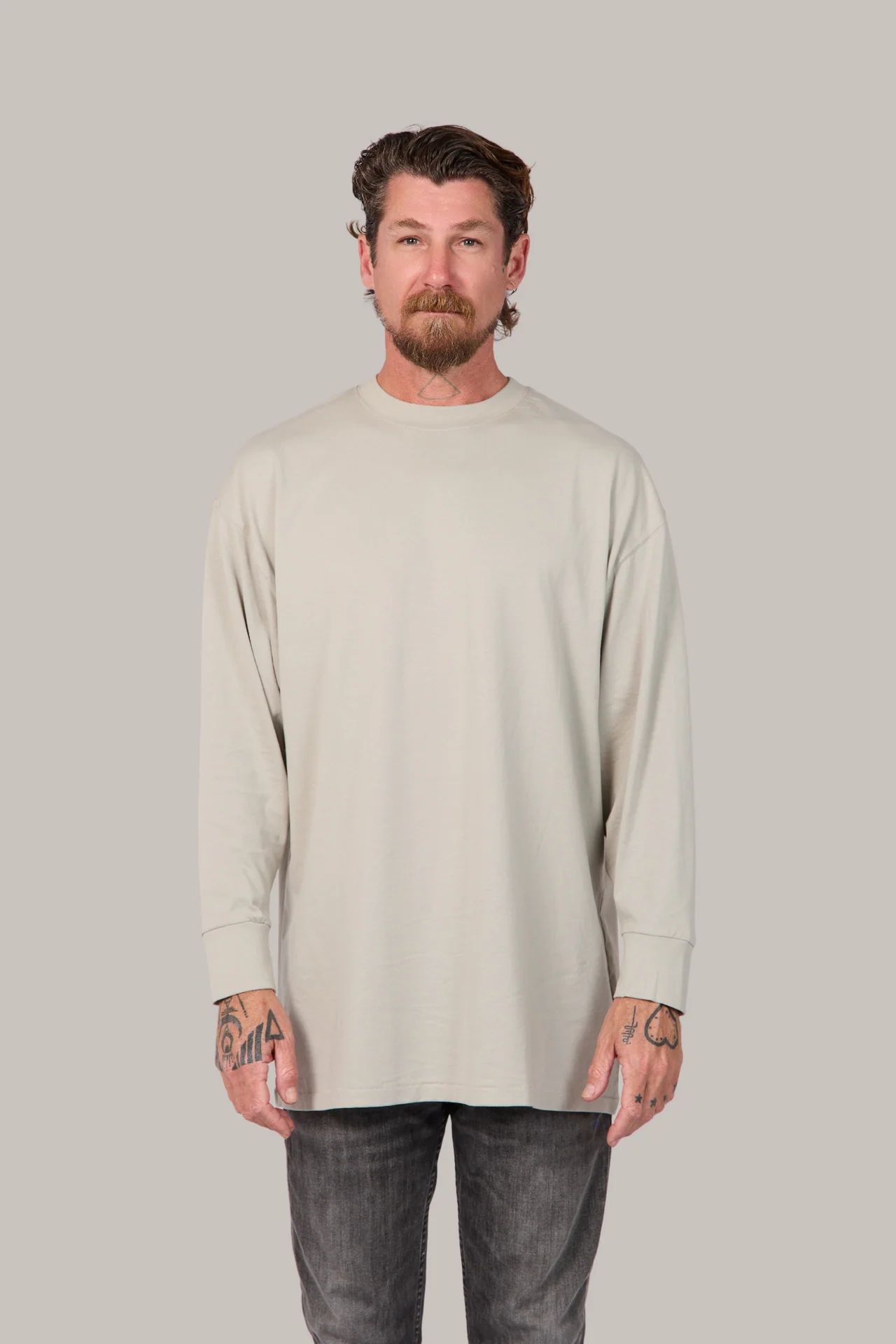 Pre-shrunk to minimise shrinkage, pullover crew, drop shoulder, cropped full length, crew neck, sleeve cuff and hem ribbing